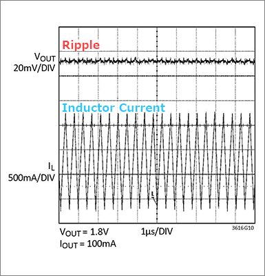 Figure 1 shows the ripple voltage and inductor current of the LTC3616 synchronous rectifier DC / DC converter with a very small ripple of a few millivolts.