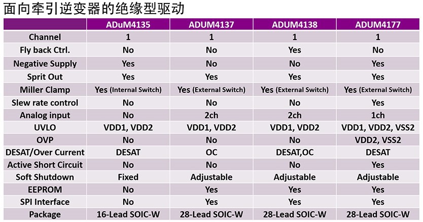 隔离栅极驱动器是逆变器中使用的最重要器件之一,与功率开关一起决定着驱动性能。ADI 隔离栅极驱动器采用 iCoupler 技术,可在不牺牲共模瞬变抗扰度 (CMTI) 的情况下实现超低传播延迟。它不仅可以用于硅基 IGBT 和 MOSFET,还可以用于基于宽带隙材料的 SiC 和 GaN。